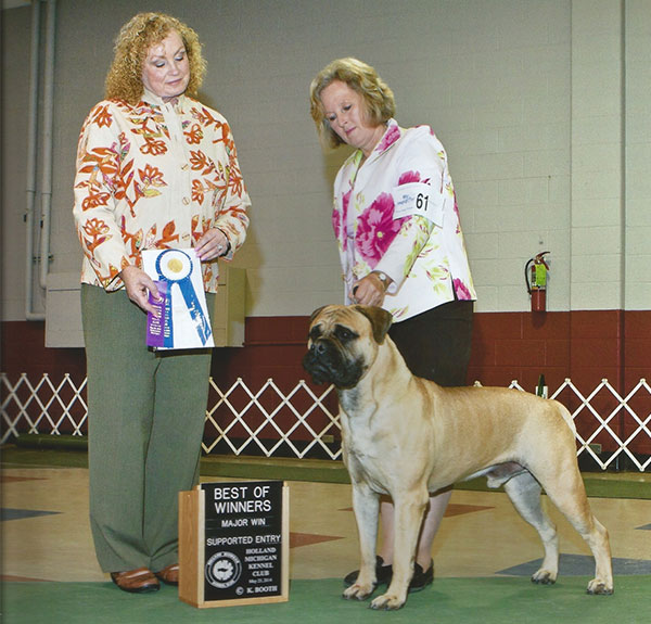- Winners Dog and Best of Winners for a 3 point Major in Kalamazoo, MI 5/23/2014 under Judge Mrs. Kimberly Meredith-Cavanna